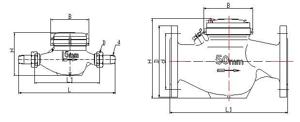 名稱 公稱口徑 過載流量 常用流量 分界流量 流量 讀數(shù) 讀數(shù) L1 L H B D d