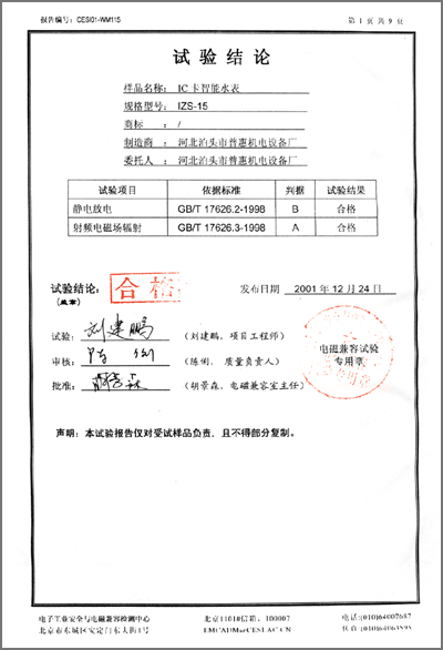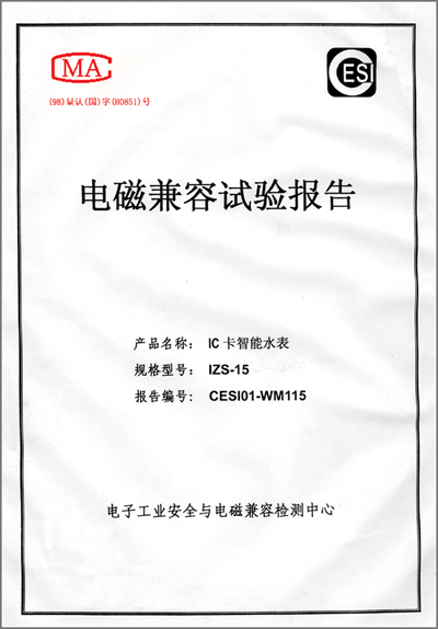 計量器具樣機試驗結果通知書“IC卡智能熱水水表