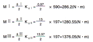 | 2、選用補(bǔ)償器: 補(bǔ)償器Ⅰ選用:0.6JY500×2,θ0=±2.5 LⅠ=0.8m,KθⅠ=590N·m/度 補(bǔ)償器Ⅱ、Ⅲ選用:0.6JY500×6,θ0=±8 LⅡ=LⅢ=1.1m,KθⅡ=197N·m/度 |