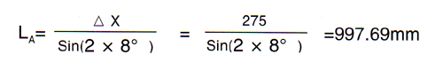 | 即LA(大于等于)≥997.69mm……(1) 一般Lp≥1.5DN×4+LⅠ+LⅡ+LⅢ……(2) (Lp為補(bǔ)償段安裝長度) 根據(jù)(1)式,取余量,將LA值向上圓整: LA=1200 (在安裝跨距要求允許條件下,LA適當(dāng)大一點(diǎn)好) |