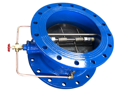 HH48/49X微阻緩閉蝶式止回閥主要由閥體、兩個(gè)半圓閥盤(pán)、回位彈簧、針式閥(微調(diào)節(jié)閥)組成。